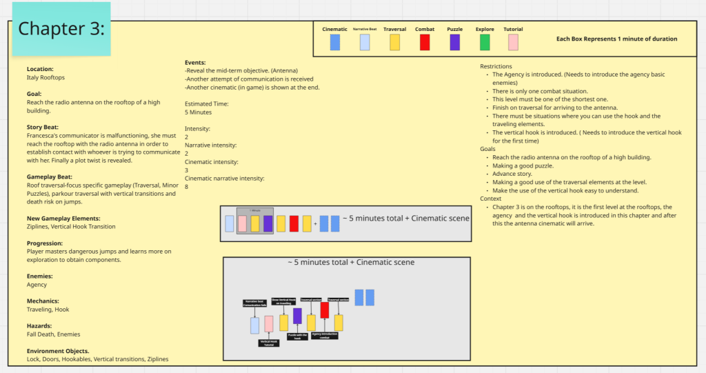 This diagram provided a visual representation of every major beat — including combat sequences, puzzles, narrative moments, and exploration phases.