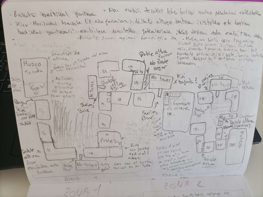 An initial paper sketch was drafted to outline the level’s beats, helping to organize the early flow and overall structural composition.